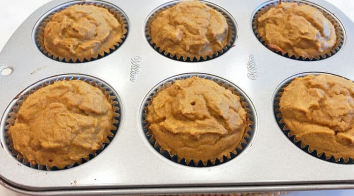 These pumpkin muffins are so fluffy and delicious. I used a nonstick muffin pan sprayed with coconut oil and found they were a little bigger than when put in foil liners. I rounded the tops so they were perfectly cracked on top after they baked. These are so easy and they look so adorable and appealing and they taste great!