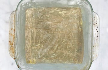 Preheat the oven to 325°F. Grease an 8-inch square glass baking dish with butter. Be generous when greasing to ensure the cake releases easily from the pan. You can also line the bottom with a square of parchment paper and then grease the paper.